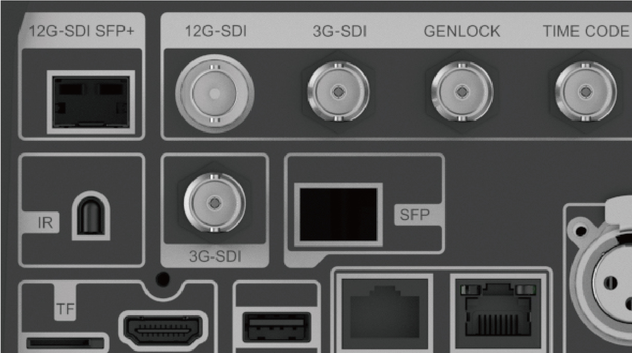 无损接口输出高质量画面可选双12G-SDI接口,可选同时输出两路高质量4KP60画面。这一强大功能充分满足广播级高质量影片的录制要求。更有GenLock、Time Code等高配置接口可选为专业录制的连接和拓展提供便利。