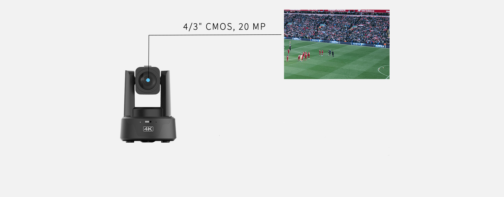 摄像机配置4/3英寸高端CMOS传感器,呈现专业级的图像细节和色彩,20倍光学变焦,最大水平视角可达71°,OIS+EIS专业防抖,PDAF+CDAF精准聚焦,OLPF消除摩尔纹干扰,ND滤镜调节进光量维持画面恒定,支持12G-SDI和3G-SDI同时输出画面,同步进行视频采集和监看。