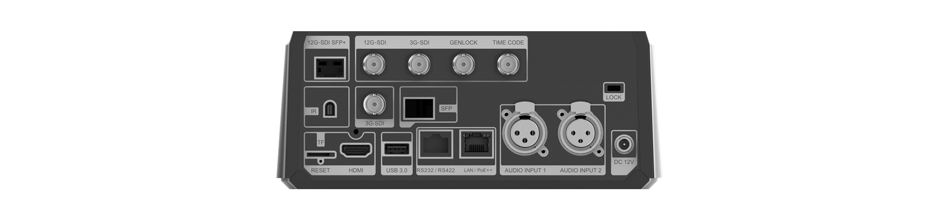 无损接口输出高质量画面可选双12G-SDI接口,可选同时输出两路高质量4KP60画面。这一强大功能充分满足广播级高质量影片的录制要求。更有GenLock、Time Code等高配置接口可选为专业录制的连接和拓展提供便利。